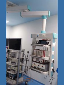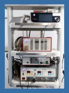 Harmonic Knife, CO2 Insufflator, Bipolar Richard Wolf Cautery and Underwater Cautery placed in the Surgical Pendulum.
