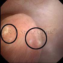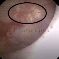 Kidney stone is a solid mass of CRYSTALS. It is the process of crystallization which initiates the formation of kidney stones. This happens in nephrons or units of kidney. Once a small crystal is formed, it can both grow & unite with other crystals leading to the formation of small concretion which eventually forms a stone. Once these large crystals detach from the collecting ducts, the process of stone formation starts in the renal collecting system. A recurrent kidney stone former is advised to know a little bit about something known as Randall’s plaque. Alexander Randall discovered plaques on the renal papillae eight decades back based on examination of 1154 pairs of autopsied Kidneys. He described these renal papillary lesions as cream colored or milk patch areas composed of calcium phosphate & calcium carbonate. These plaques could act as NIDUS for formation of KIDNEY STONE. Calcium Oxalate stone can form on this nidus & then detaches from this plaque to become a free floating stone in the collecting system of kidney